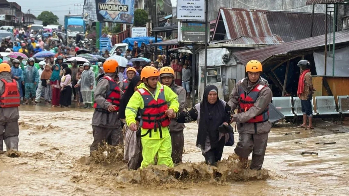 Relawan Mengevakuasi korban banjir Aceh - Sumatera